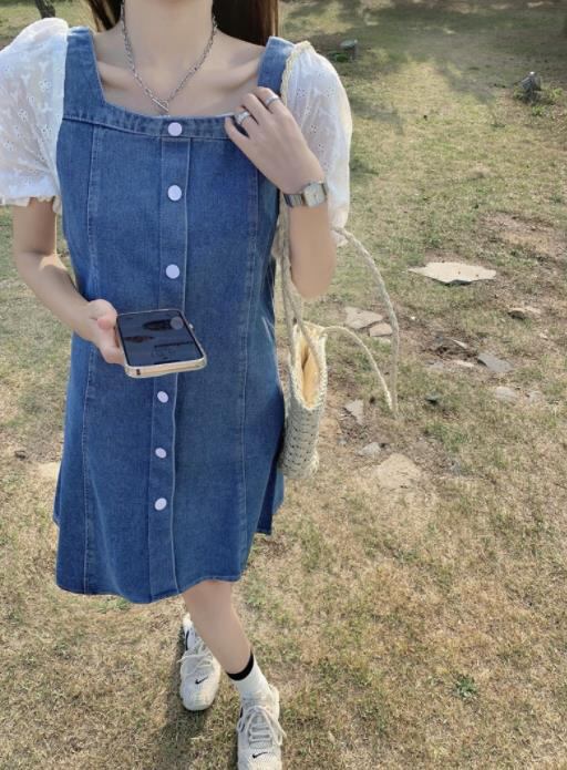 春夏新作 女 レディース ハイウエスト 半袖 デニム ミニ ワンピース ドレス 台型スカート S-LJHBYU5875112