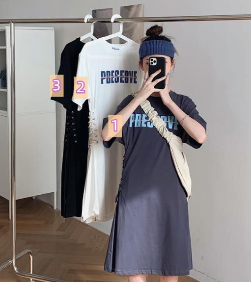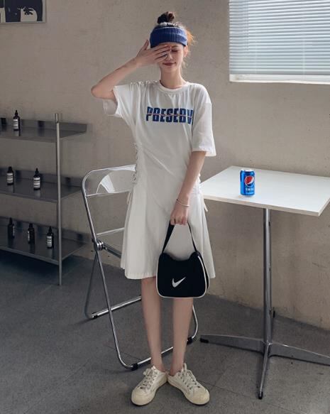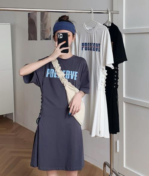 春夏新作 女 レディース ハイウエスト 半袖 tシャツ ミニ ワンピース ドレス 台型スカート 3色JHBYU5875115