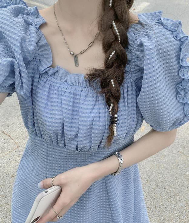春夏新作 女 レディース ハイウエスト 半袖 パフスリーブ ミニ ワンピース ドレス 台型スカート 3色TYRO452103