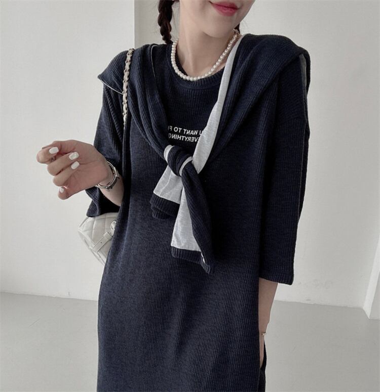 韓国ファッション 怠惰な風 半袖 Tシャツワンピース スリム 2024夏 ゆったりする