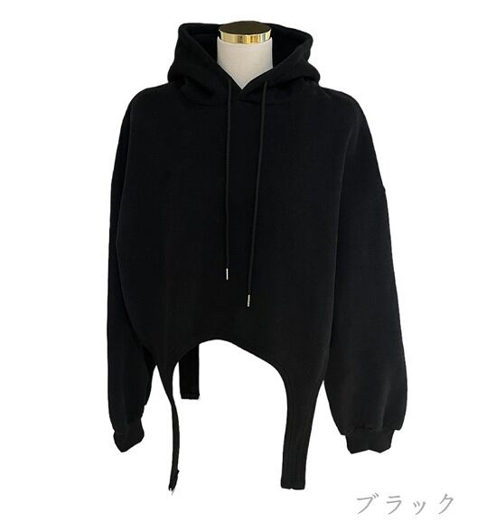 スウェット トレーナー アシンメトリー 長袖 切り替え 体型カバー 着痩せ 帽子付き シンプル カジュアル パーカー カットソー 不規則 フード付