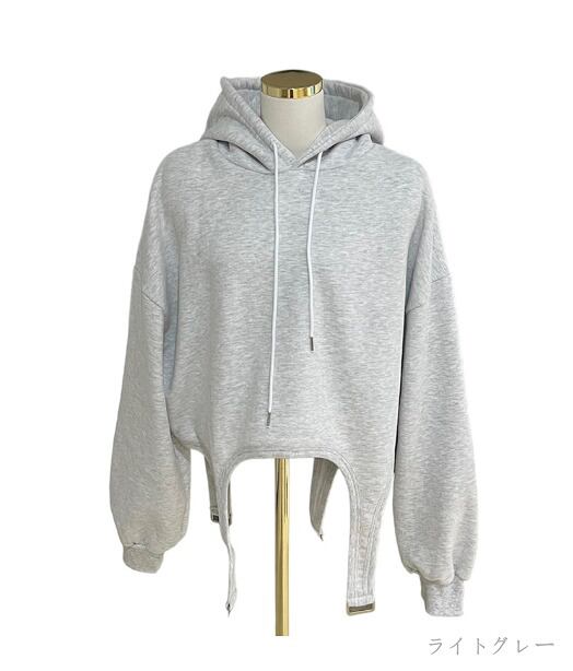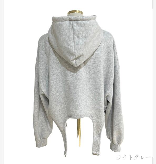 全3色 スウェット トレーナー アシンメトリー 長袖 切り替え 体型カバー 着痩せ 帽子付き シンプル カジュTYRO452142