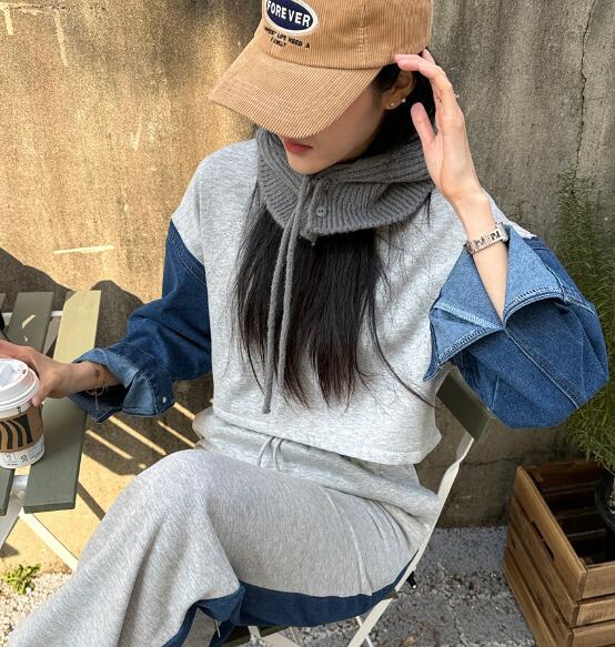 全2色 スウェット トレーナー 切り替え バイカラー 体型カバー 着痩せ シンプル カジュアルJHYM58754103