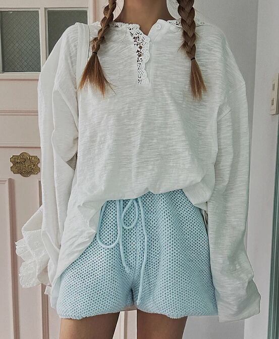 スウェット トレーナー 切り替え 体型カバー 着痩せ レース 帽子付き カジュアル★