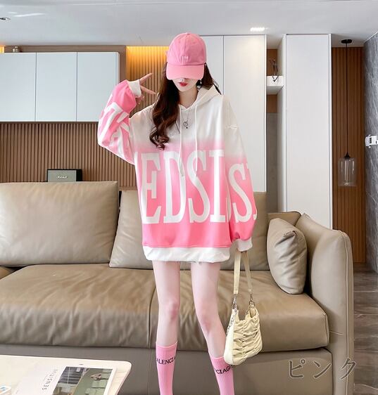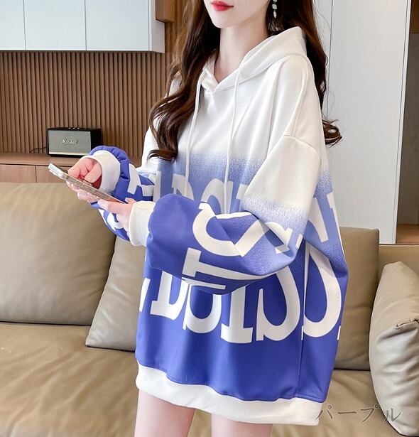 全3色 スウェット トレーナー 長袖 切り替え バイカラー 体型カバー 着痩せ 帽子付き シンプル カジュアル★# HHJK55287