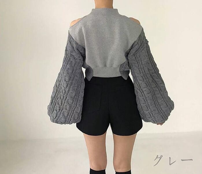 全2色 スウェット トレーナー 長袖 切り替え 体型カバー 着痩せ シンプル★# KKF2552