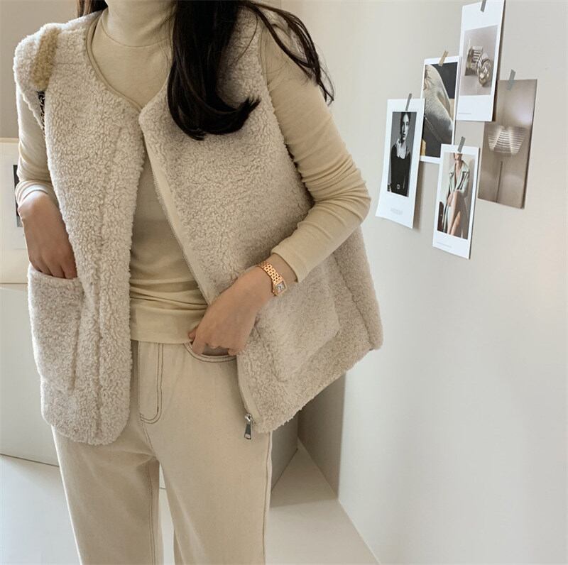 秋冬 新作 ins超人気 ラムウール ジッパー 韓国風ファッション スウェット ベスト★# HHB96