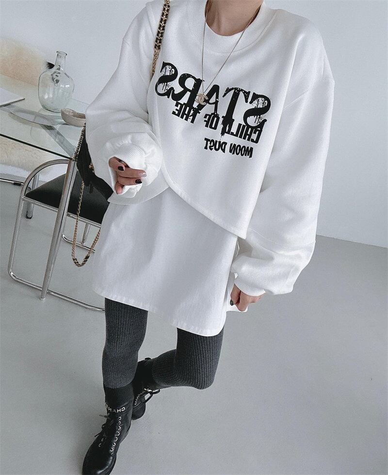 秋冬 新作 レトロ 設計感 裏起毛 長袖 配色 偽2枚 トレーナー★# GGFR23969