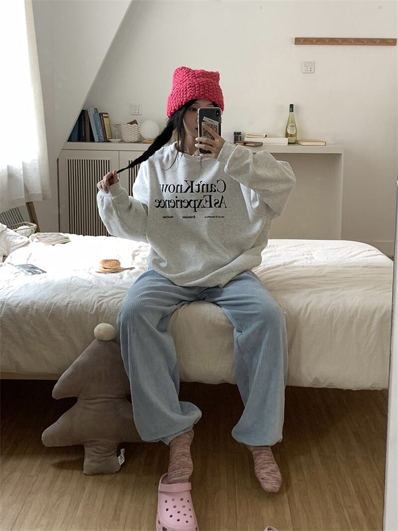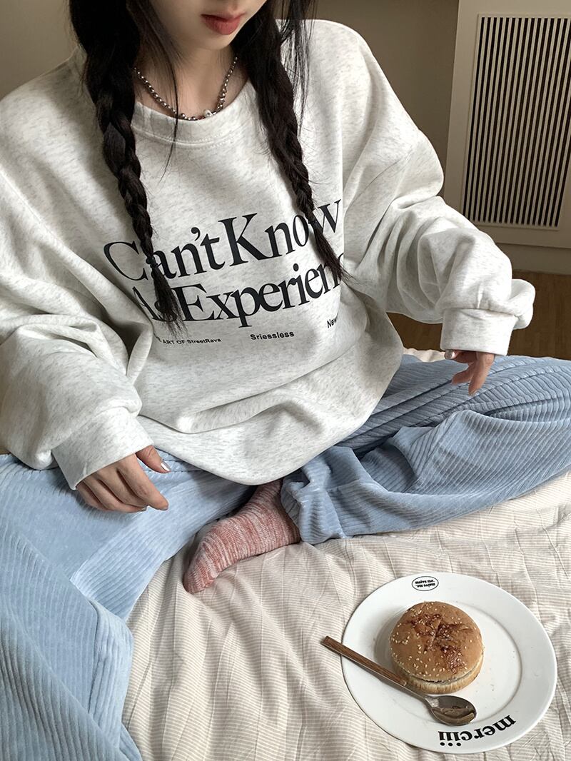 秋冬 新作 レトロ ゆったり 長袖 プリント 配色 アルファベット プルオーバー 裏起毛 トレーナー★# GGFR23975