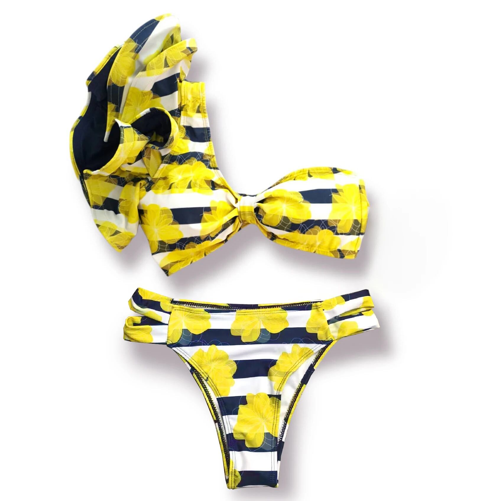ブラジルの女性のビキニ,ワンショルダープリントのプッシュアップ水着,セクシーな2023水着|ビキニセット| ビキニ Tシャツ T240618235945_11