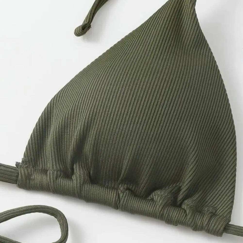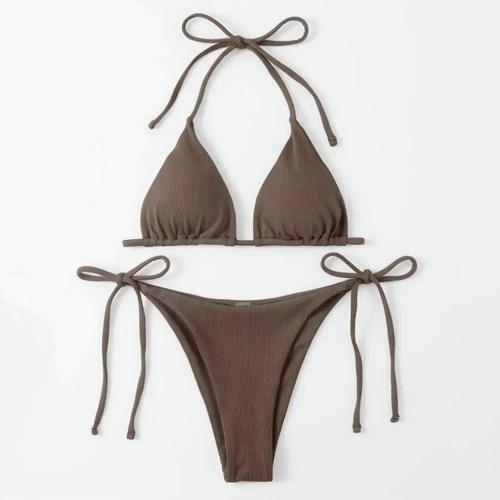 女性用リブバックレスビキニセット、水着、トライアングルブラ、サイドタイ、ひも、水着、ビーチウェア、水着、パッド、ホルター、セットあたり2個 ビキニ Tシャツ T240619000001_01