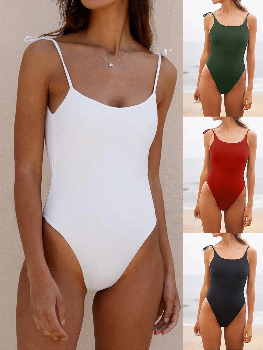 女性のためのワンピースの背中の開いた水着、ノースリーブのボディスーツ、モノクロの水着、黒、白、緑、赤、女性 ビキニ Tシャツ T240619000226_02