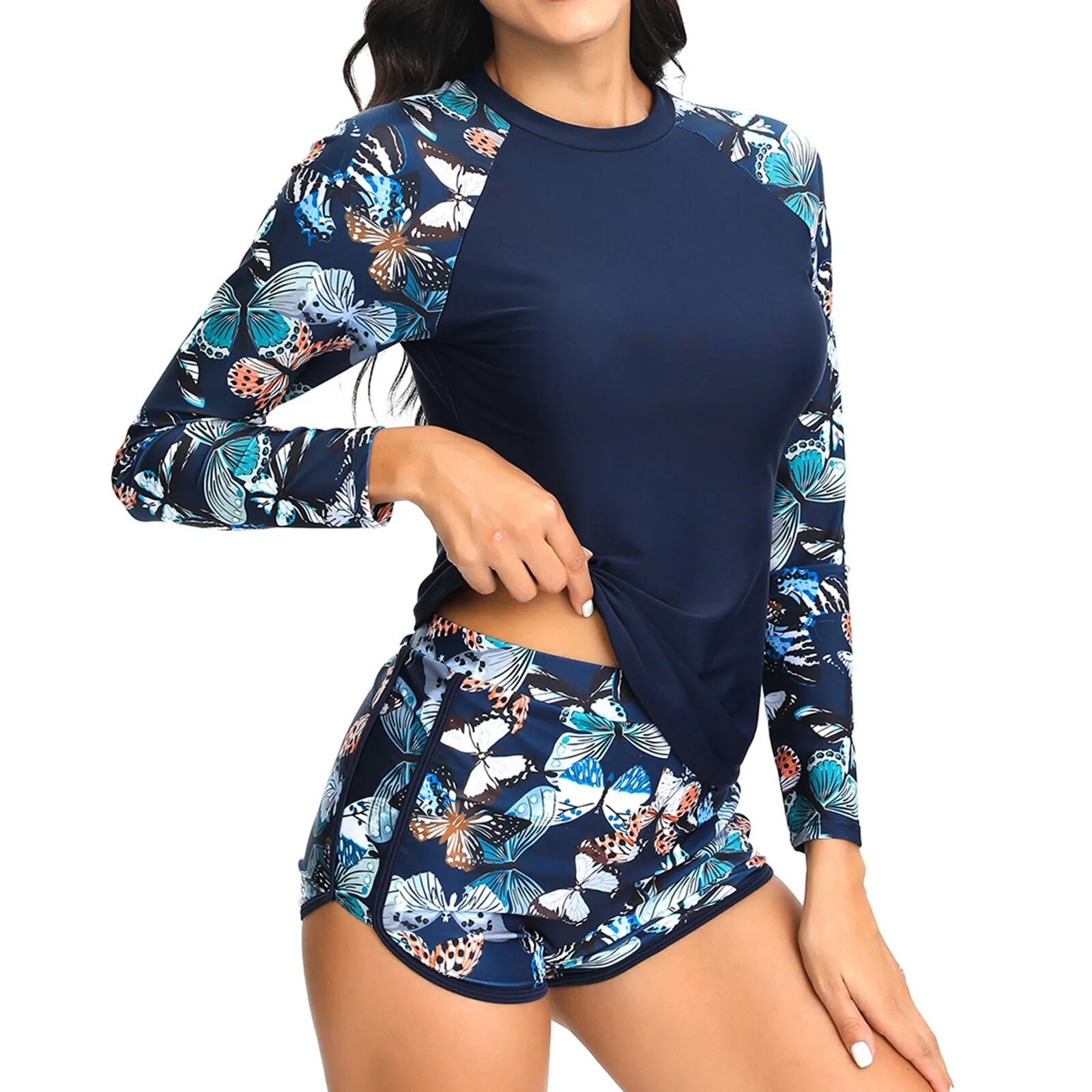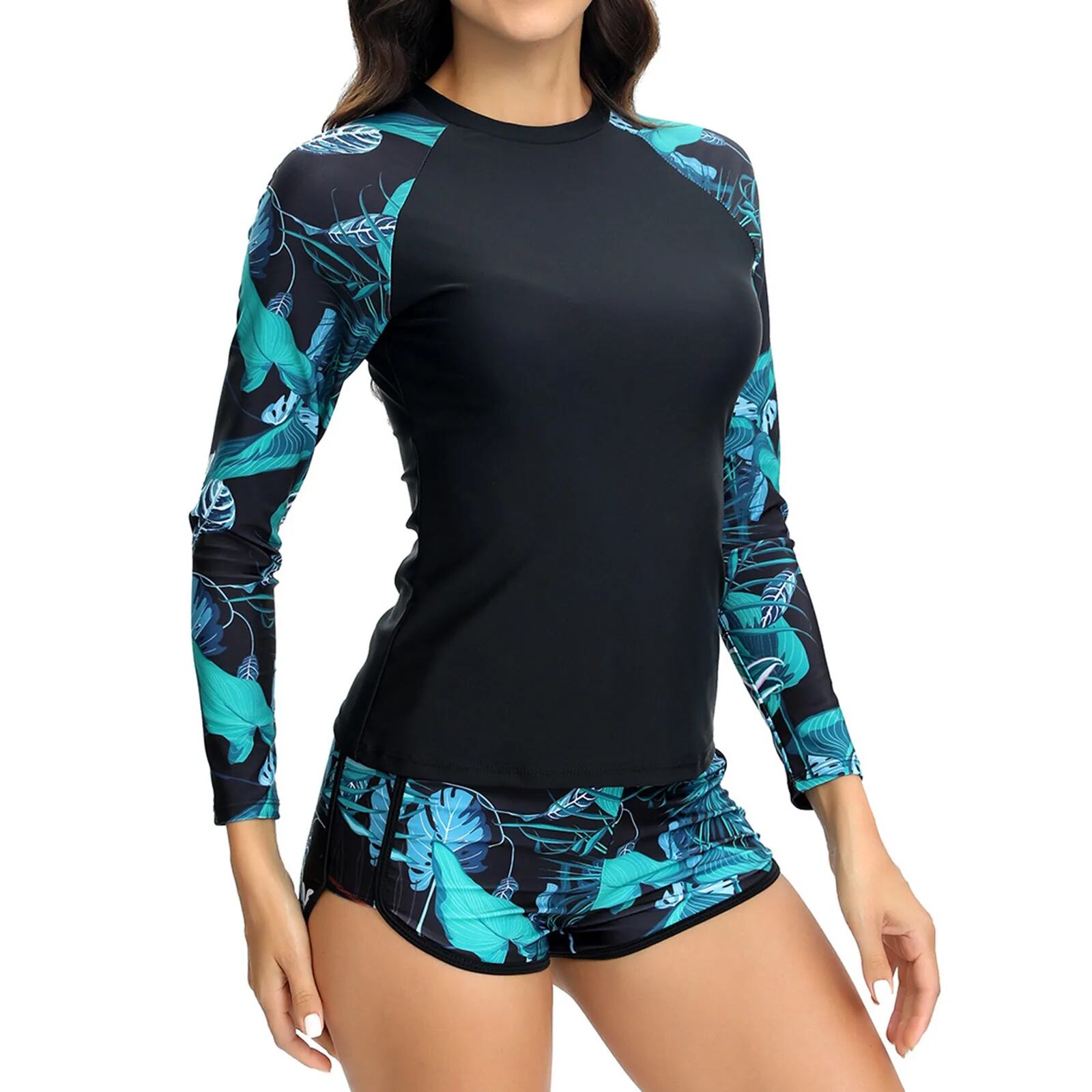 女性用長袖タンキニセット,ショーツ付き水着,サーフィン,スポーツ,プール,ビーチウェア,2個,2022 ビキニ Tシャツ T240619000348_04