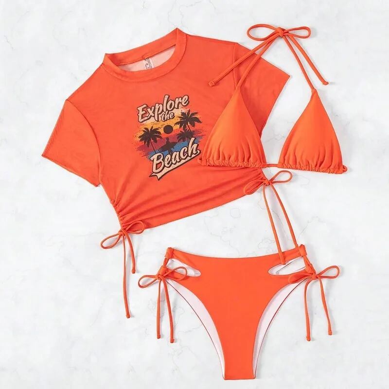 女性用ビーチビキニ,ショーツ付きビーチビキニ,ネット,日焼け止め,ヨーロッパの袖とアメリカのファッション,女性用水着 ビキニ Tシャツ T240619000358_03