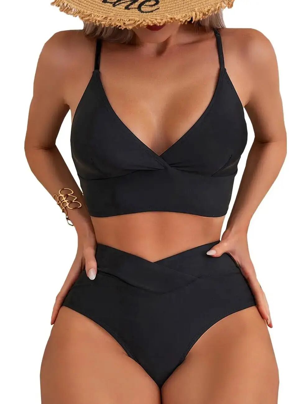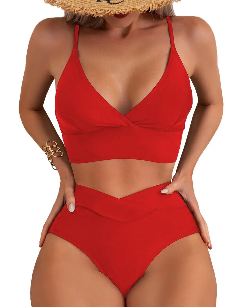 女性用クロスビキニセット,Vネック水着,ひも付き,ハイウエスト,Vカット,2個 ビキニ Tシャツ T240619000437_01