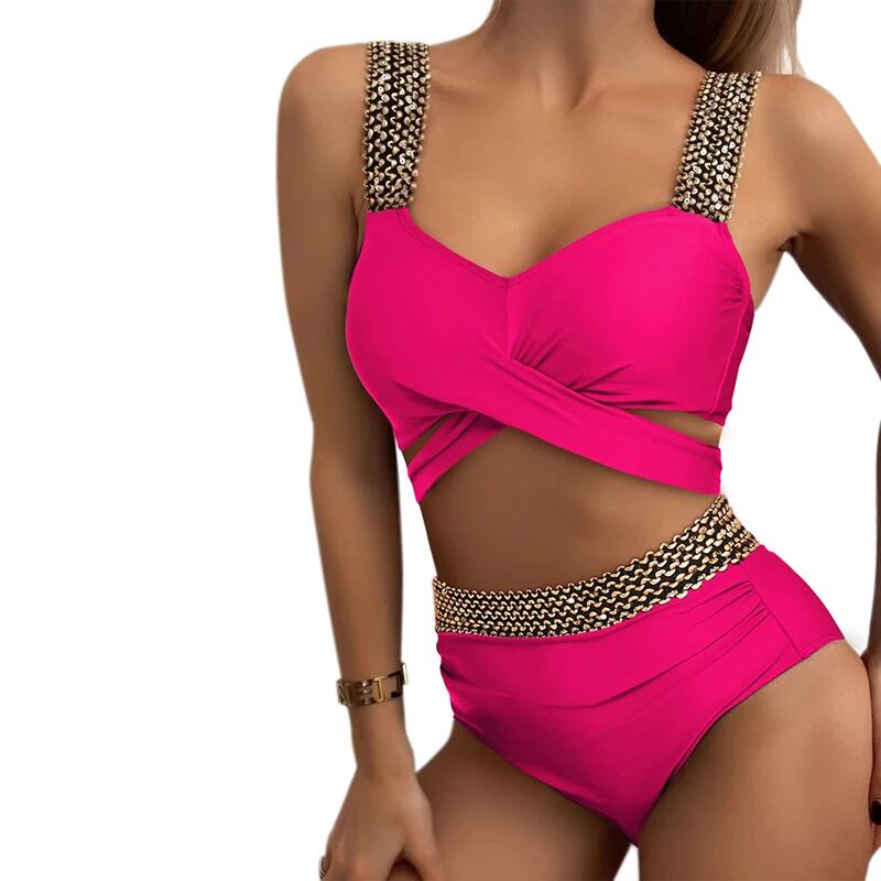 女性用ハイウエストビキニセット,パッド入りトップス,おなかコントロールパンティー,女性用スリム水着,2枚 ビキニ Tシャツ T240619000442_06