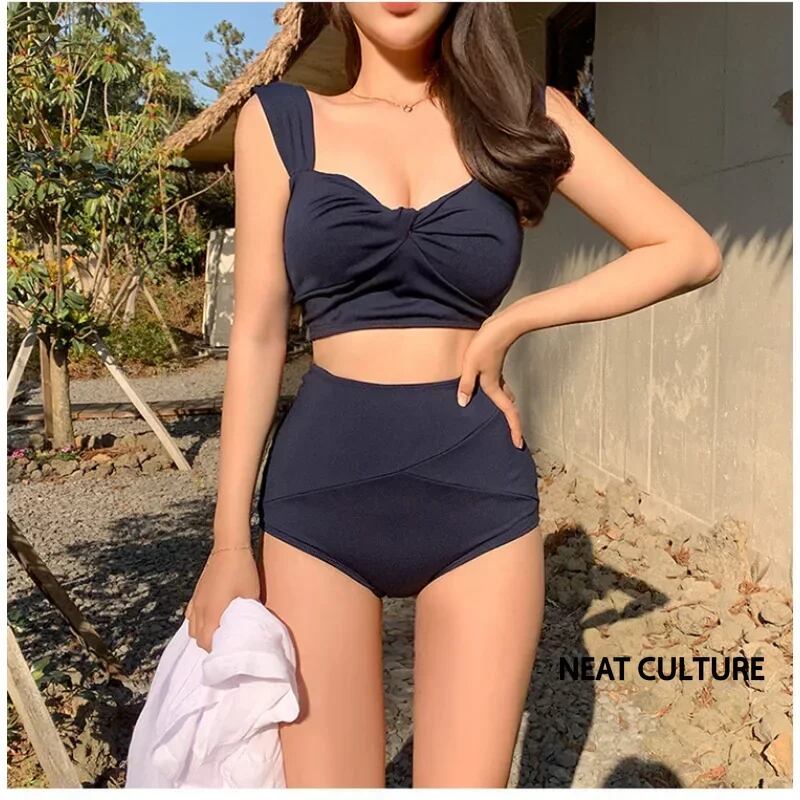 ハイウエストトライアングルビキニセット,女性用水着,韓国水着,無地,ファッショナブル,2ピース,2023 ビキニ Tシャツ T240619000451_01