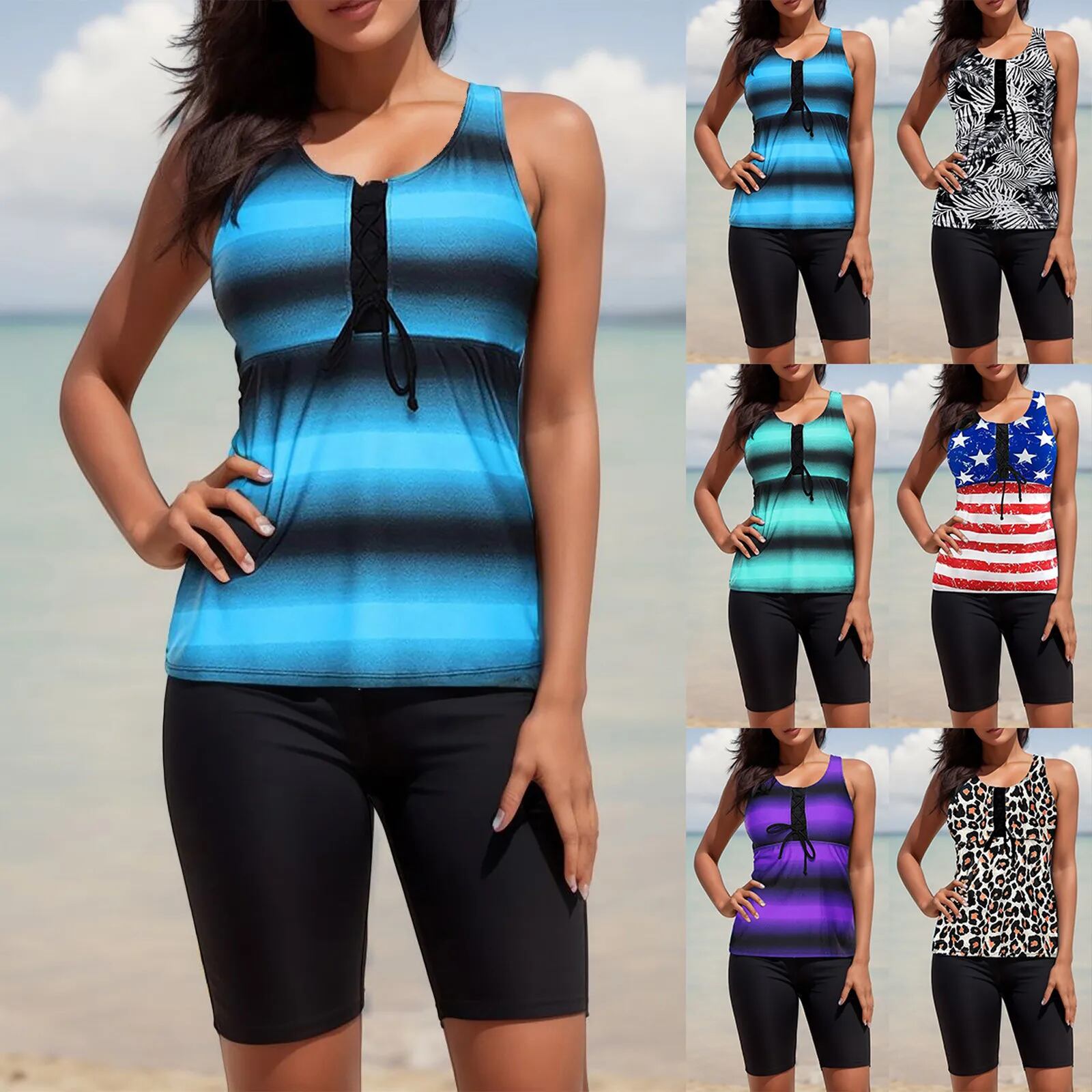 女性用タンキニ水着、おなかコントロールビキニセット、ショーツ付きトップ、2ピース水着、2021 ビキニ Tシャツ T240619004221_01