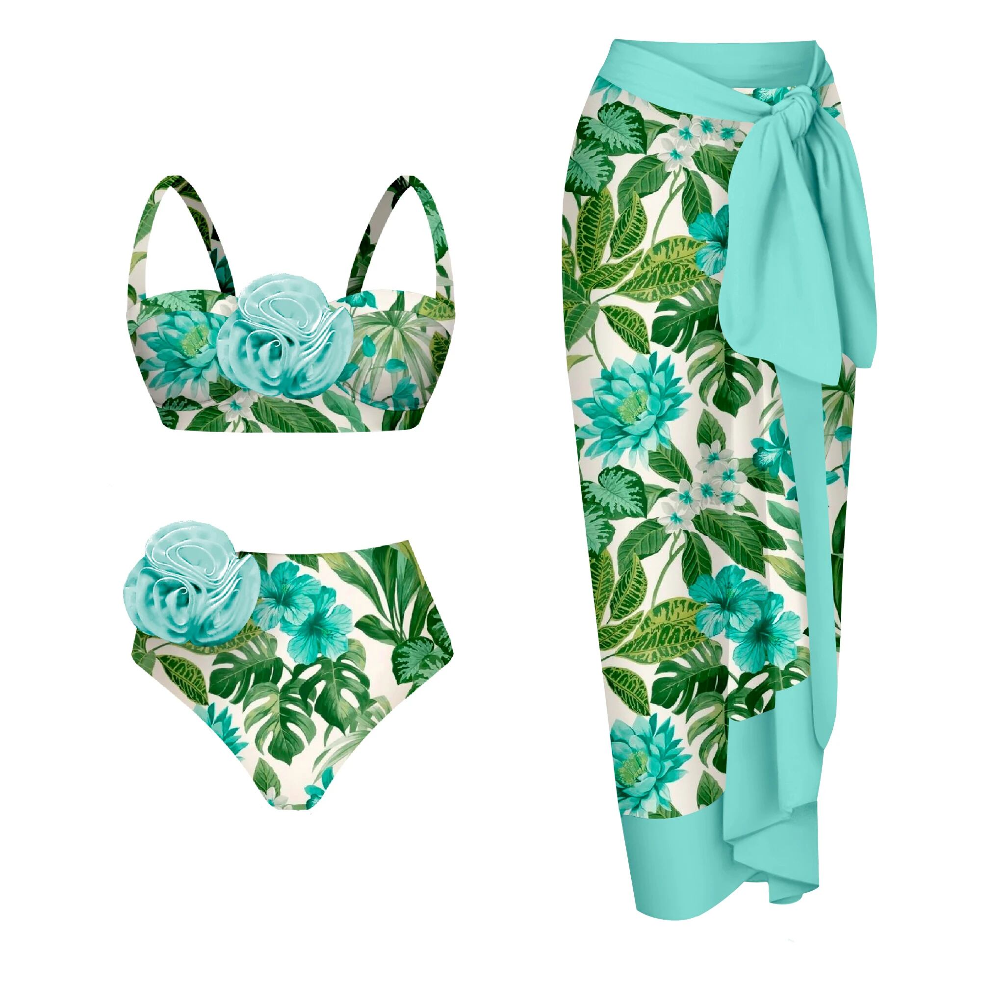 ツーピースの女性用3Dフラワービキニ,ハイウエスト水着とアンダーワイヤーの水着,プッシュアップ,夏,2022 ビキニ Tシャツ T240619004346_02