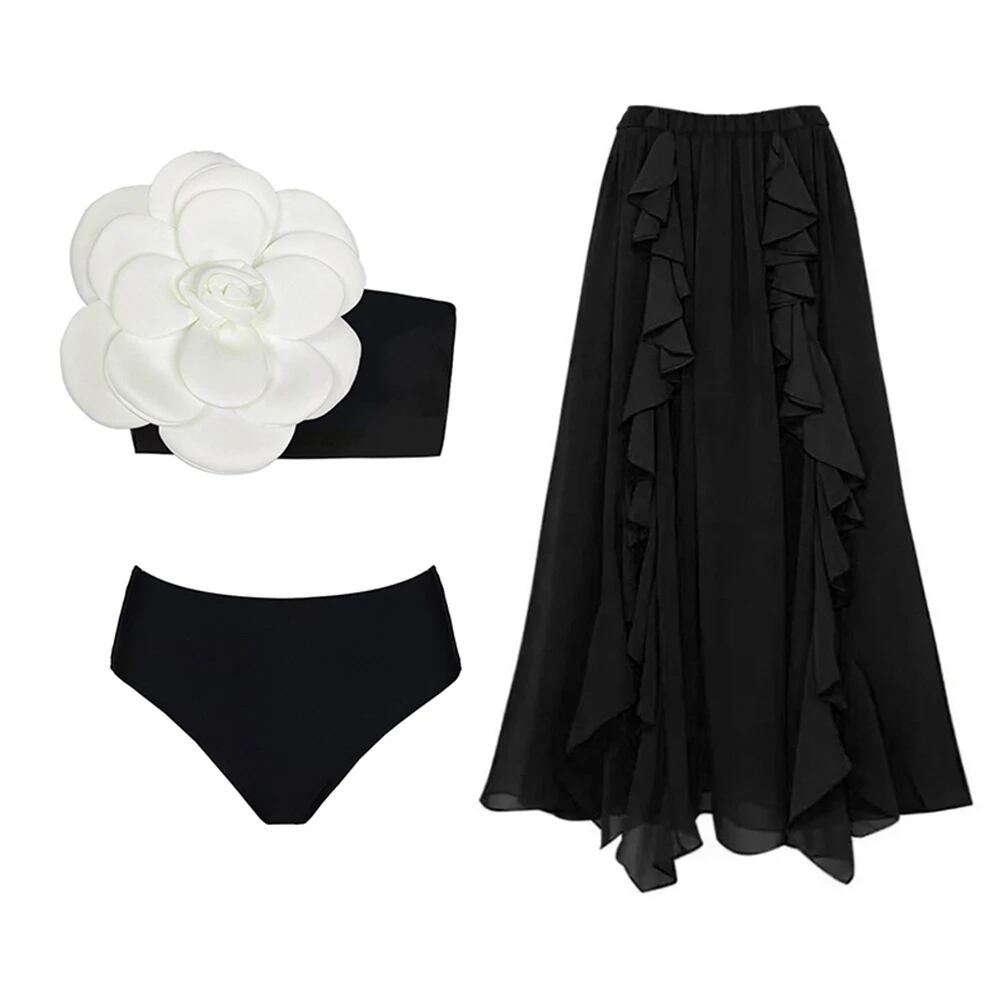女性のためのセクシーなフローラルビキニカバーアップ、ソリッド3Dフラワー水着、高級水着、女性のためのビーチウェア、夏の水着スカート、2022 ビキニ Tシャツ T240619004403_47