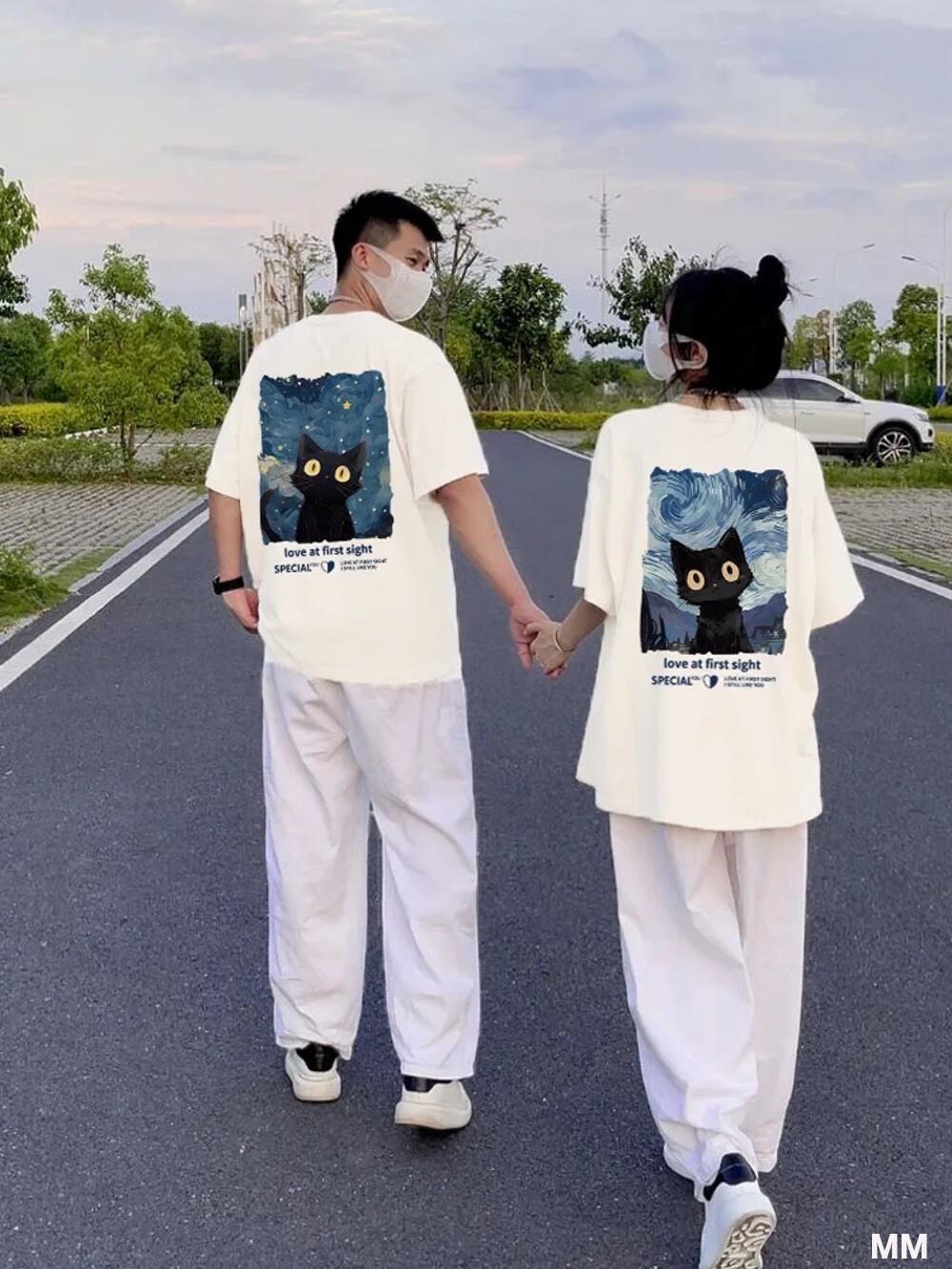 男性と女性のための青い空の猫のプリントTシャツ,半袖のルーズなコットントップ,ボーイフレンドとガールフレンドのためのTシャツ Tシャツ シャツ T240619164822_01