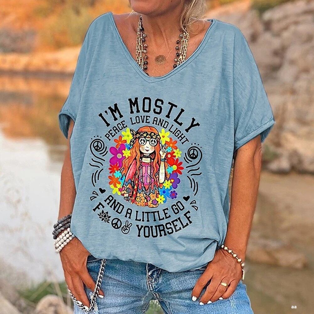 女性のためのクラシックな半袖VネックTシャツ,女性のためのヴィンテージプリントの服,毎日,大,夏 ボトム ボトムス ズボン T240619164457_04