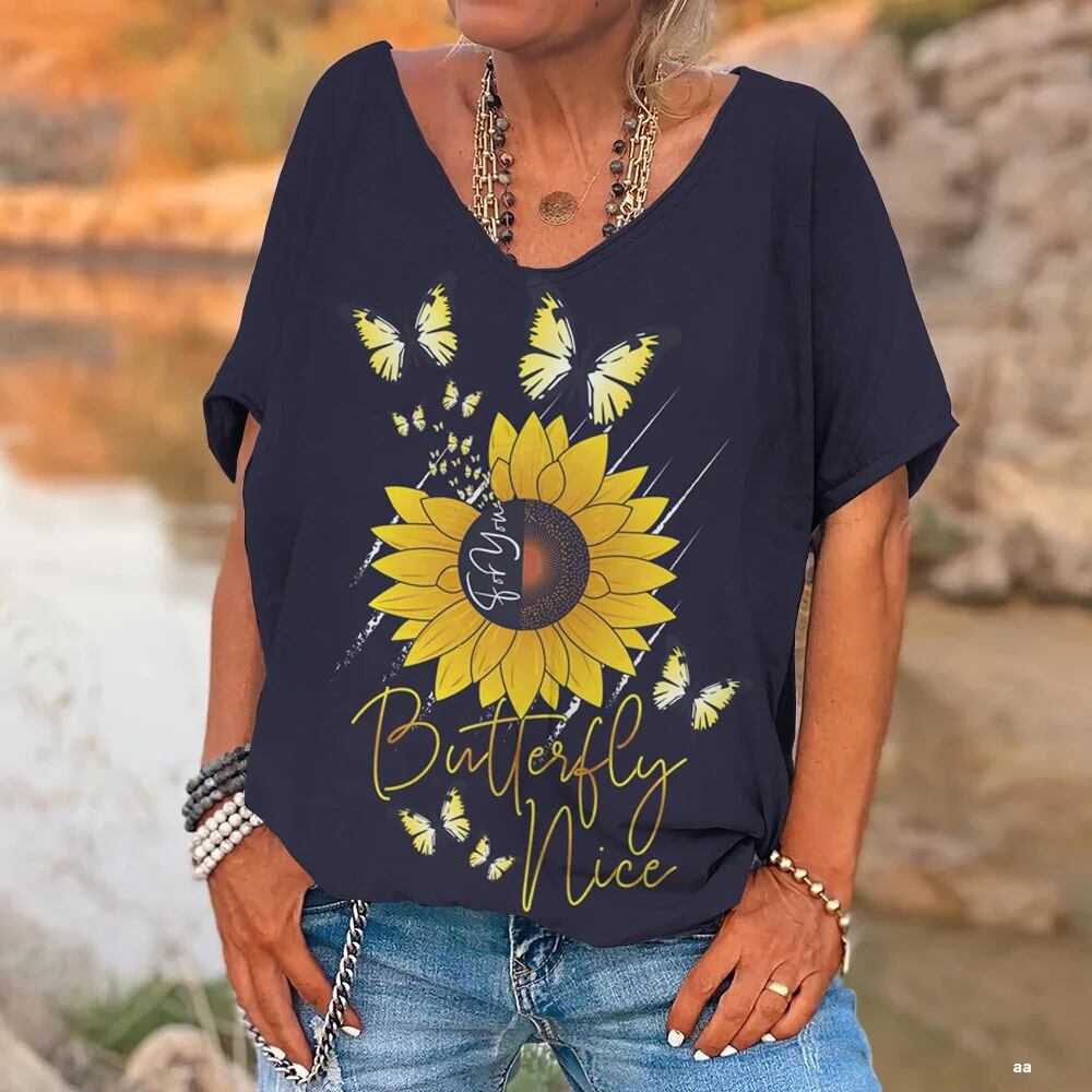 女性のためのクラシックな半袖VネックTシャツ,女性のためのヴィンテージプリントの服,毎日,大,夏 ボトム ボトムス ズボン T240619164457_12