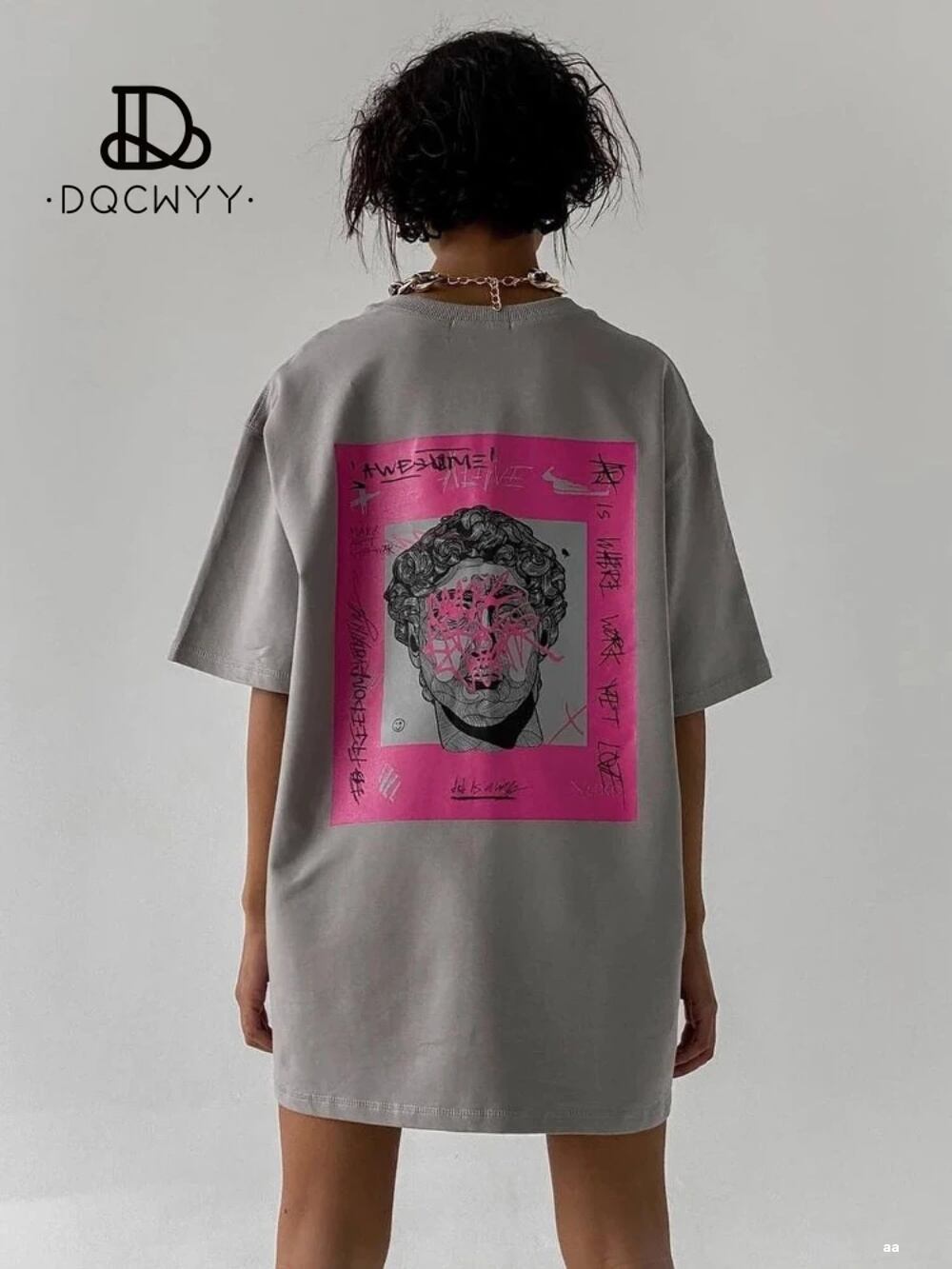 女性用特大OネックTシャツ,ユニセックス,ファッショナブルなデザイン,バックパーソナライズアート,抽象的なプリント,女性服,夏,新作 ボトム ボトムス ズボン T240619164609_01