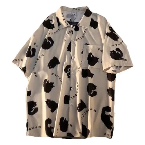女性用半袖サマーブラウス,猫の落書きシャツ,ストリートスタイルのショートトップ,韓国のサマーシャツ,2023