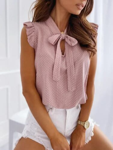 エレガントなフリルの水玉模様のブラウスとシャツ、ノースリーブのtunic、レースアップネクタイ、カジュアルオーバーサイズトップス、セクシーなプルオーバー、夏