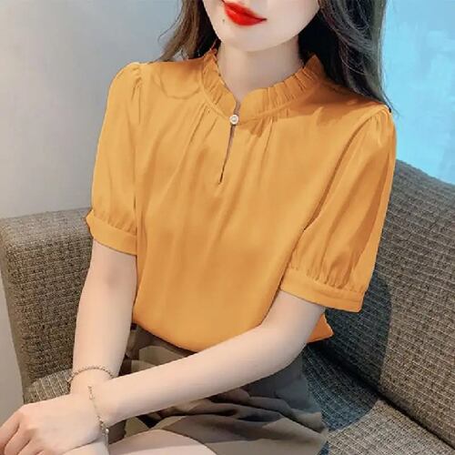 Vonda-女性用半袖ふくらんでいるシャツ,スタンドカラー,ルーズフィット,カジュアル,エレガント,オフィス,サマーファッション,2024