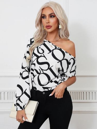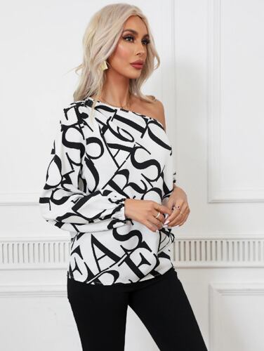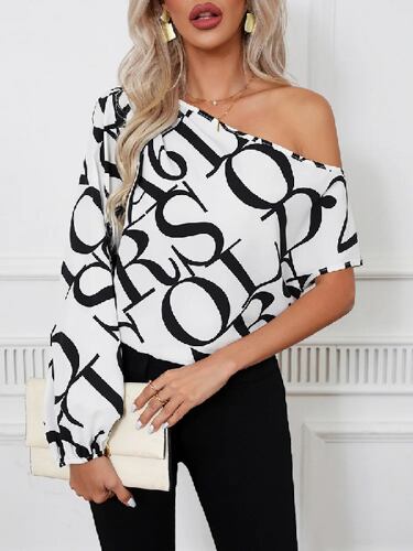 女性のためのセクシーな非対称フローラルブラウス,裸の肩,長袖,花柄,白いTシャツ,夏