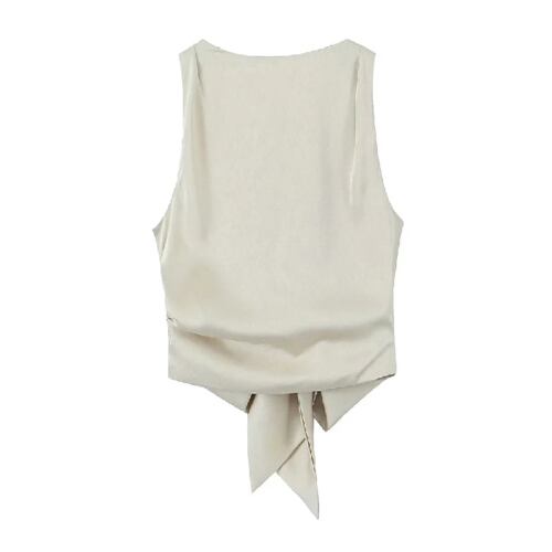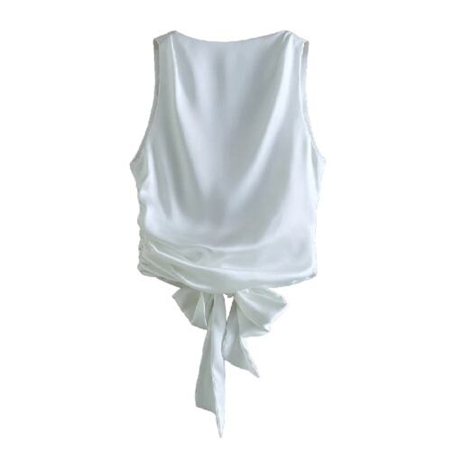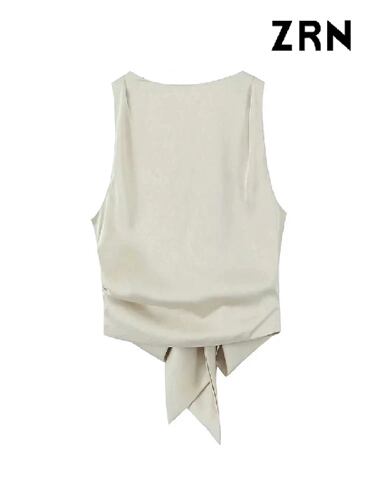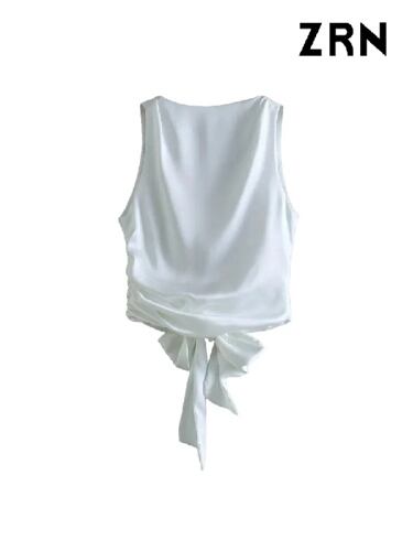Traf-女性のオープンクロップブラウス、結ばれたサテンバック、oネック、ノースリーブの女性のシャツ、シックなトップス、ヴィンテージファッション