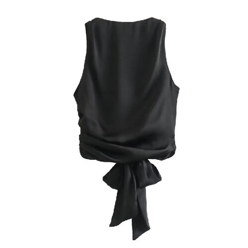Traf-女性のオープンクロップブラウス、結ばれたサテンバック、oネック、ノースリーブの女性のシャツ、シックなトップス、ヴィンテージファッション★1
