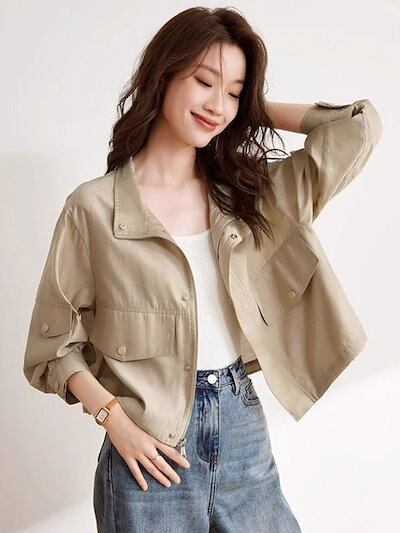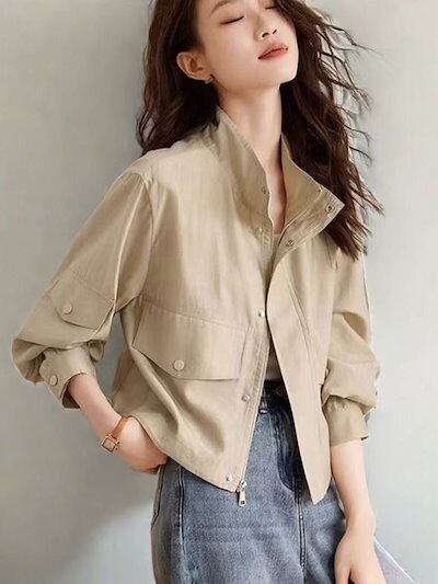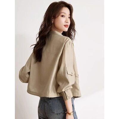 人气 新作 トレンチコート 無地 ワークウェア ジャケット 2024 秋 ルーズ ショート トップス69