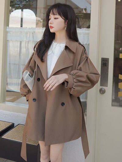 人气 新作 トレンチコート カレー ショートセクション トレンチコート コート ゆったり 2024 秋の新作 ランタンスリーブコート ジャケット