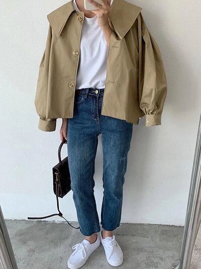 人气 新作 トレンチコート 長袖コート ゆったり 2024 秋の新作 ショート丈トレンチコート トップス