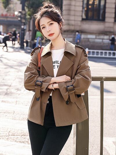 人气 新作 トレンチコート ショートジャケット レディース ゆったり 2024秋新作 ロングスリーブ ジャケット トップス トレンチコート