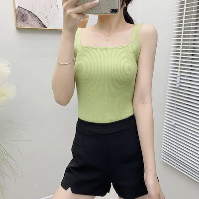 タンクトップ プラスサイズ ニット ストラップ ウエストコート ノースリーブトップス2