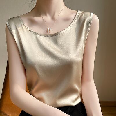 タンクトップ ラウンドネック シルク サスペンダー ベスト ノースリーブトップス ボトムシャツ45