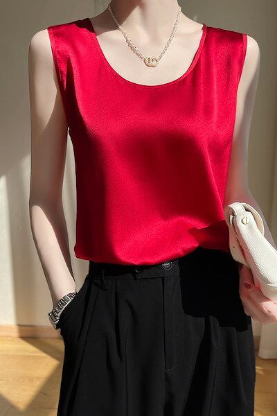 タンクトップ ラウンドネック シルク サスペンダー ベスト ノースリーブトップス ボトムシャツ61