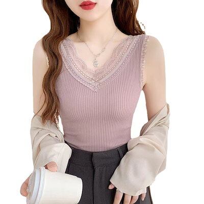 タンクトップ レース サスペンダー 女性 秋 新作 インナー セクシー スリム Vネック ベスト ノースリーブ88
