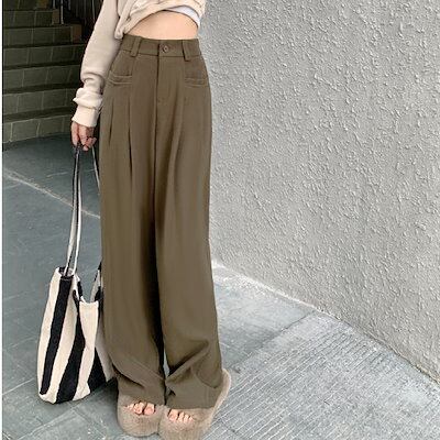 ワイドパンツ 2024新作ゆったり細身ストレートパンツレディース秋パンツドレープカジュアルスーツワイドパンツ7