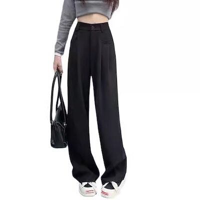 ワイドパンツ 2024新作ゆったり細身ストレートパンツレディース秋パンツドレープカジュアルスーツワイドパンツ9