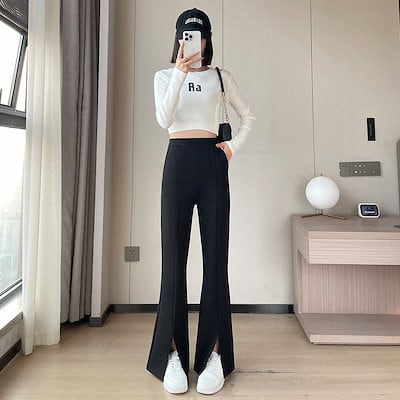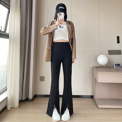 ワイドパンツ フレアパンツ 2024 秋新作 ストレッチ スプリット ウエストゴムパンツ26