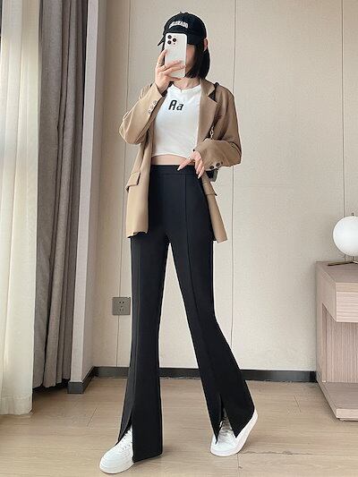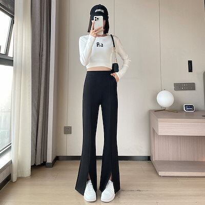 ワイドパンツ フレアパンツ 2024 秋新作 ストレッチ スプリット ウエストゴムパンツ28