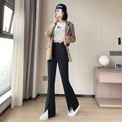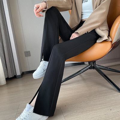 ワイドパンツ フレアパンツ 2024 秋新作 ストレッチ スプリット ウエストゴムパンツ29