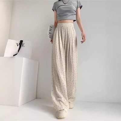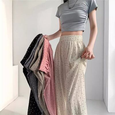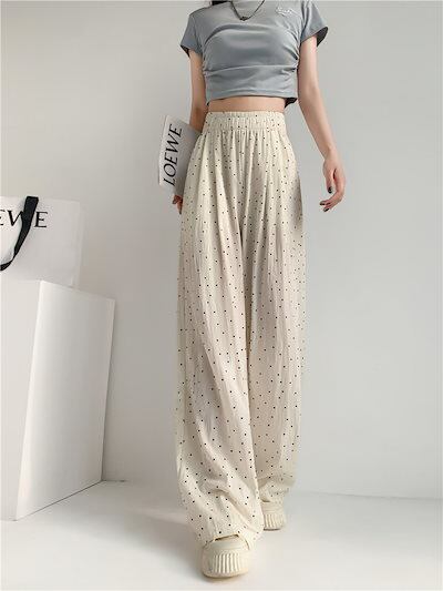ワイドパンツ 水玉ワイドパンツ レディース 春夏 薄手 アイスシルク ドレープ ストレートパンツ