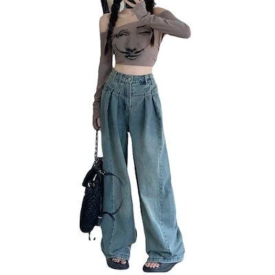 ワイドパンツ デニムワイドパンツ レディース 秋 ハイウエスト ゆったり ウォッシュド オールドパンツ30