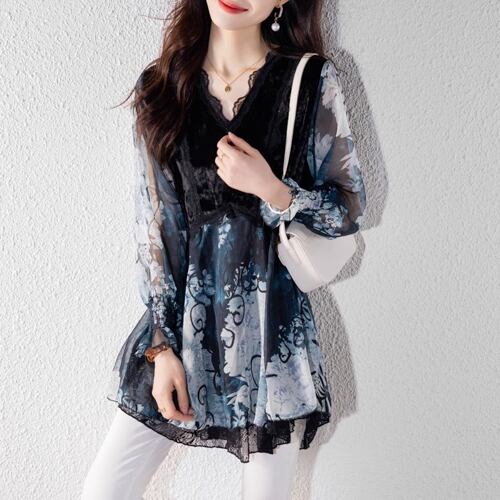 初回送料無料 新作レディースファッション カジュアル プリント シフォン ゆったり トップス